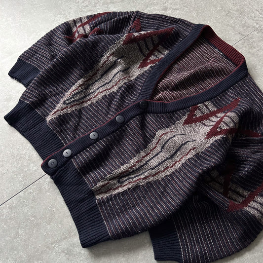 Vintage Geometric Knit Cardigan - Navy, Cream & Burgundy (Men's)