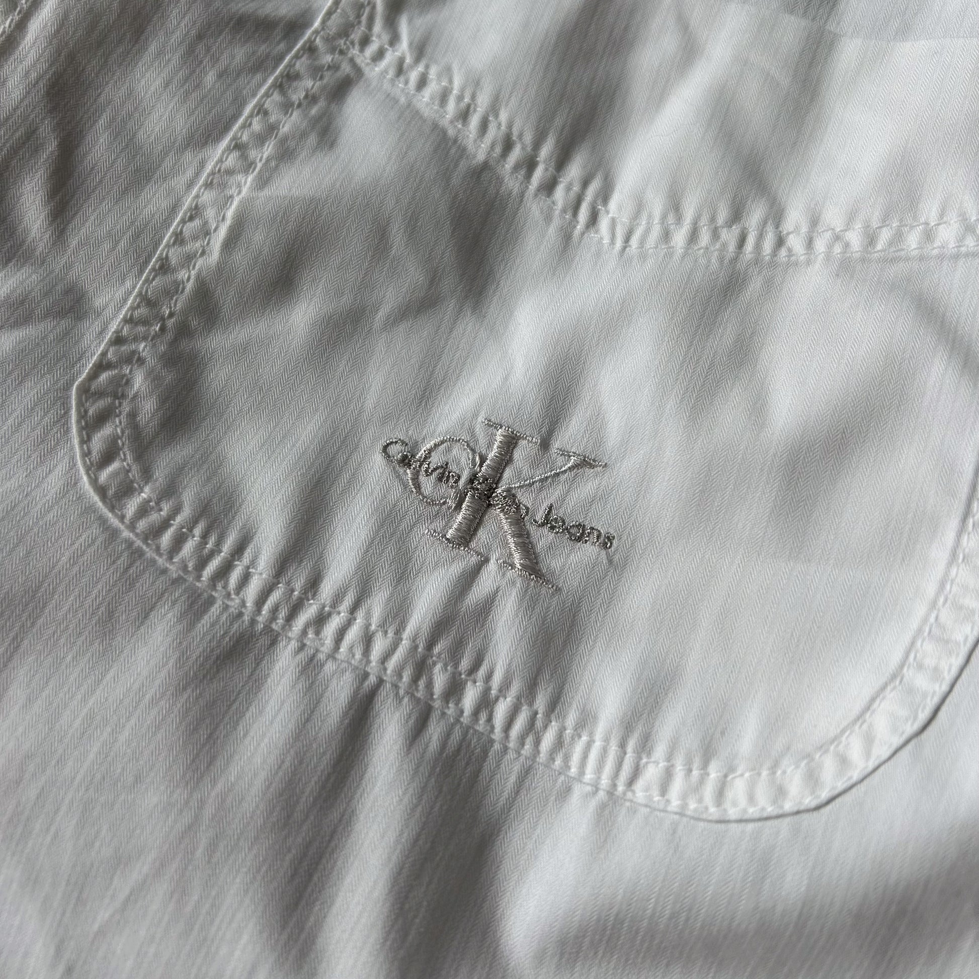 Elevate your casual wardrobe with this Calvin Klein jeans long sleeve shirt. Crafted from a soft and breathable cotton blend, it features a classic design with a single pocket and subtle logo detailing for a sophisticated touch. The crisp white hue makes it versatile for any occasion, whether paired with jeans for a laid-back look or dressed up with trousers for business casual attire.