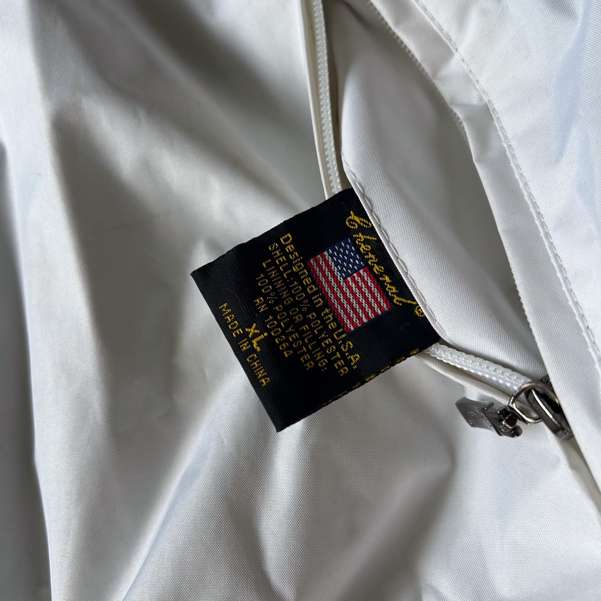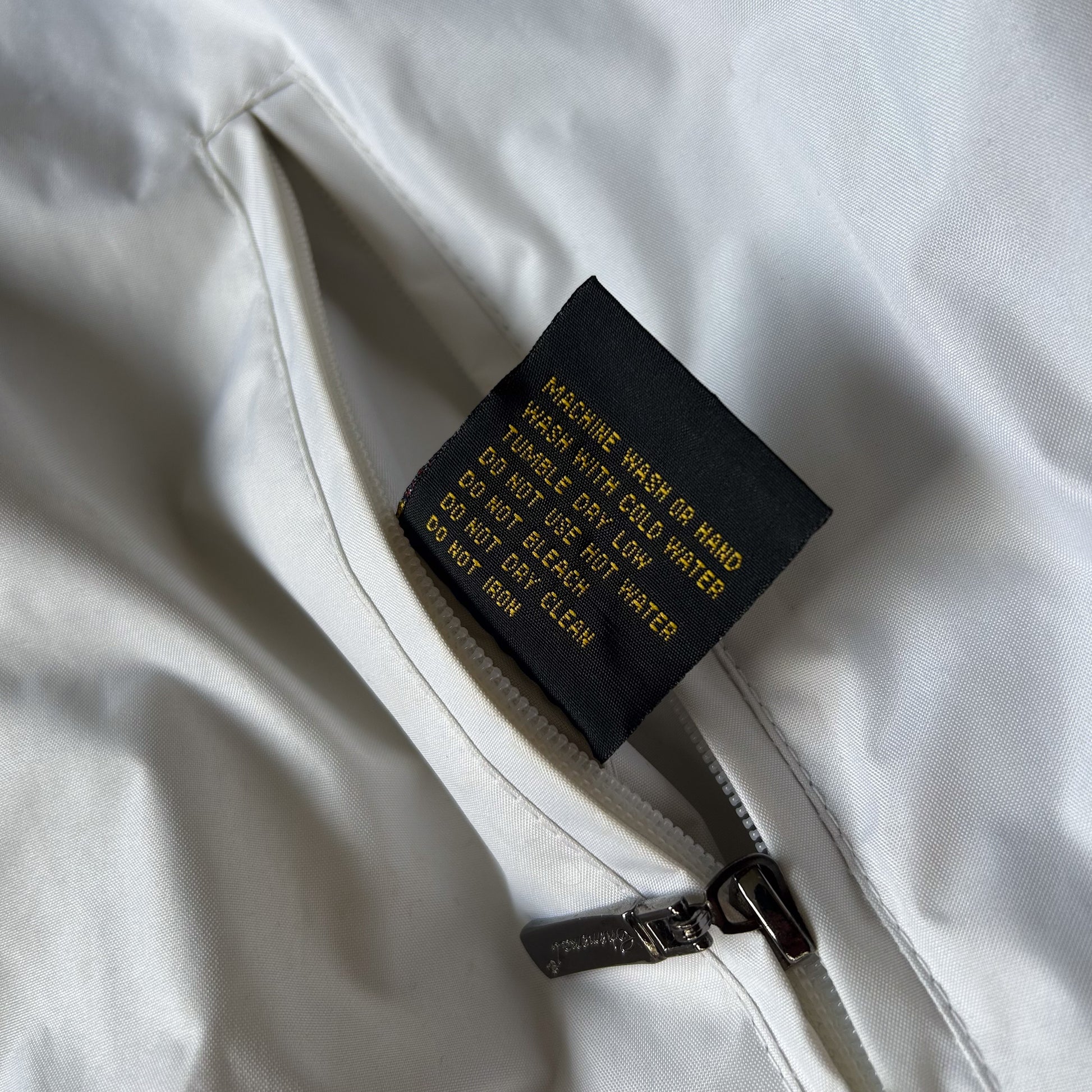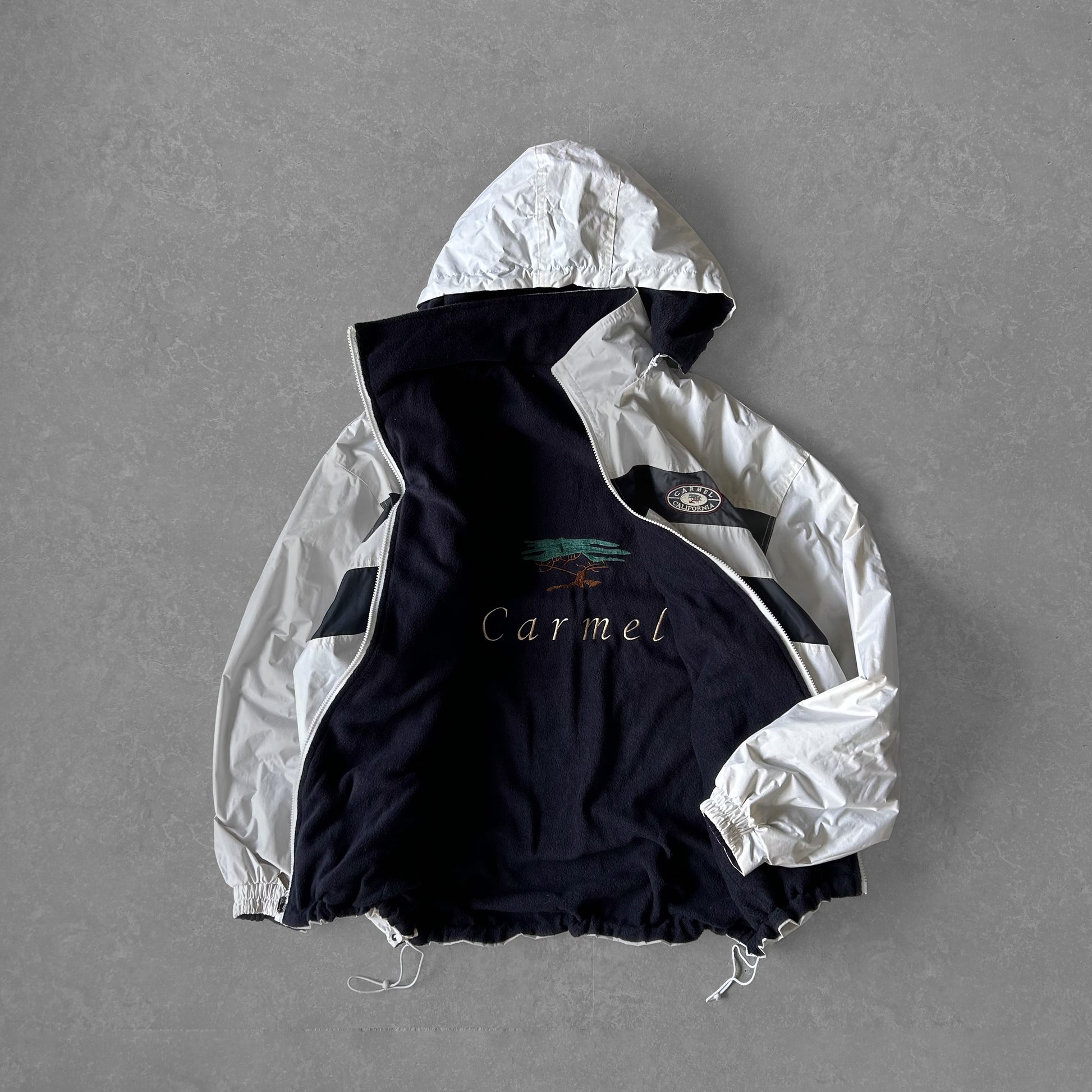 Stay stylish and comfortable with this lightweight activewear jacket from Carmel California. Featuring a white body with striking navy blue stripes, this jacket is both functional and fashionable. Designed for ease of movement, it includes a hood and adjustable hem, making it perfect for outdoor activities or casual outings. The breathable material ensures all-day comfort, while the iconic brand patch adds a touch of authenticity.
