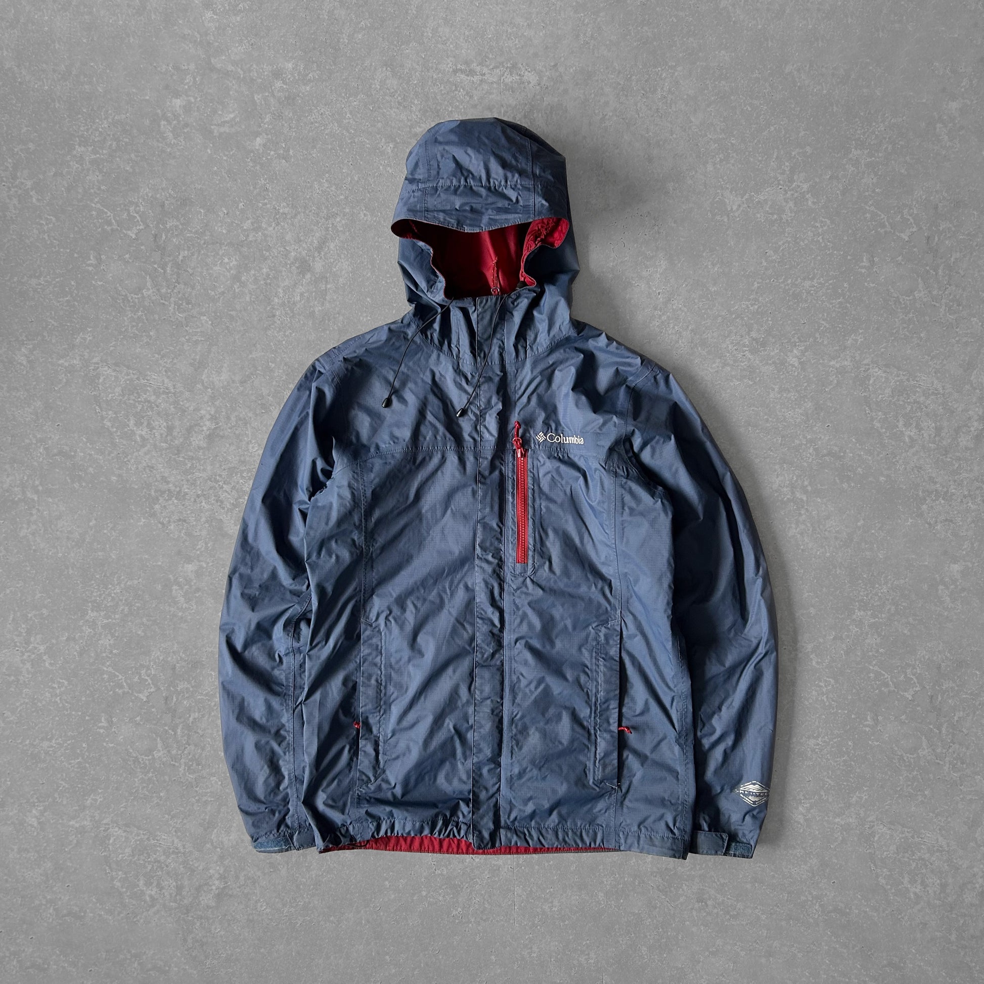 This Columbia jacket combines style and functionality, perfect for outdoor activities. Featuring a sleek navy exterior with a contrasting red lining, it offers wind and water resistance. The breathable fabric ensures comfort, while the adjustable hood and zippered pockets provide practical storage for your essentials. Ideal for hiking, running, or casual wear, this jacket exemplifies Columbia's commitment to performance and durability.