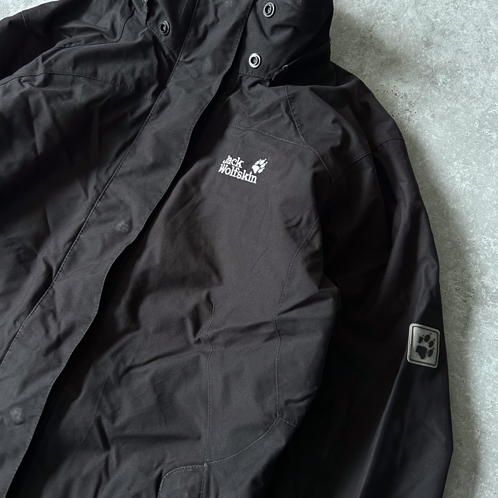 Stay stylish and protected in this Jack Wolfskin windbreaker jacket, crafted from durable material to withstand the elements. Featuring a sleek black design, this jacket combines functionality with fashion, making it perfect for outdoor adventures or casual outings. The adjustable features ensure a comfortable fit, while the soft lining provides added warmth. Ideal for layering or wearing alone, this versatile piece transcends seasons.