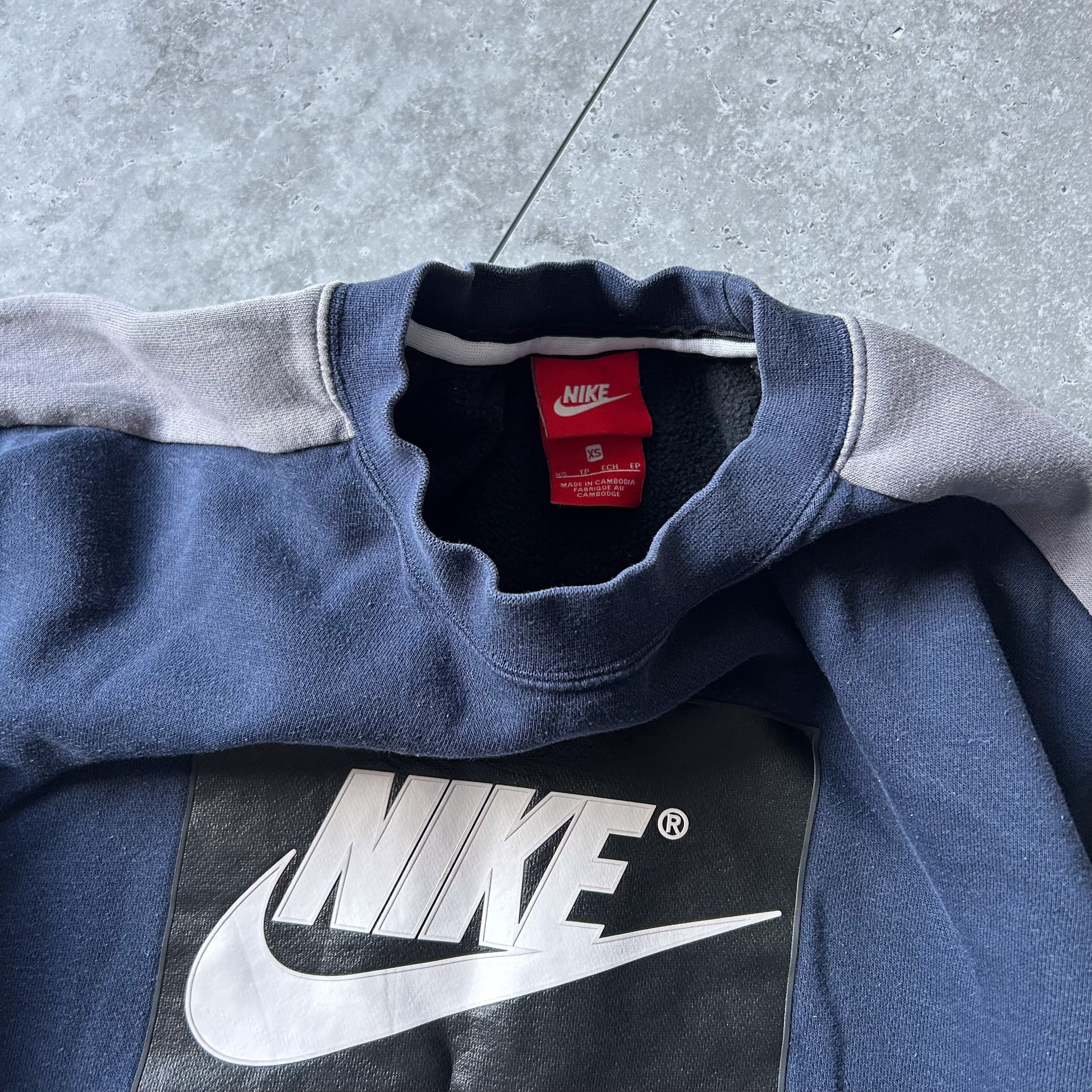 Elevate your casual style with this Nike Air crew sweatshirt. Featuring a sleek navy body complemented by grey shoulder accents, it boasts a bold black Nike Air logo that stands out. Perfect for layering or wearing solo, this comfortable piece is made from soft materials, ensuring warmth without sacrificing style. A perfect choice for active days or relaxed weekends.