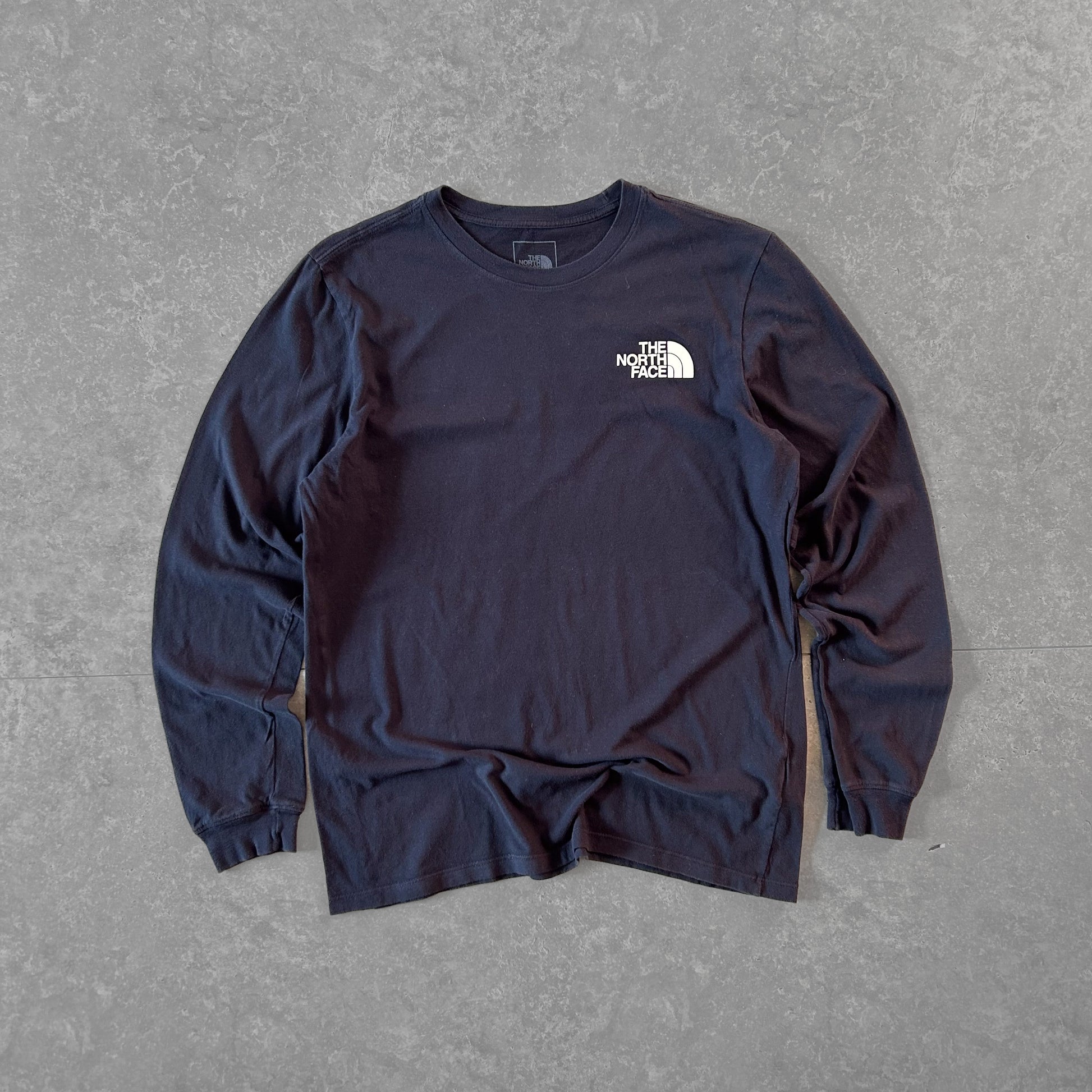Elevate your casual wardrobe with this The North Face long sleeve tee, perfect for layering or solo wear. Crafted from soft cotton, it's designed for comfort and durability. The subtle logo on the chest adds a touch of style, while the classic navy color offers easy versatility. Whether you're hitting the trails or relaxing at home, this top provides a great fit and timeless appeal.